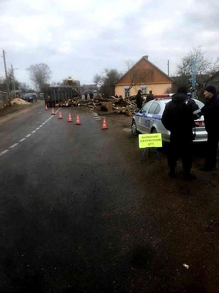 Причиной столь жуткого происшествия стал опрокинувшийся прицеп с бревнами. Инцидент случился в полдень 17 февраля на улице Коссовской в городском поселке Ружаны.