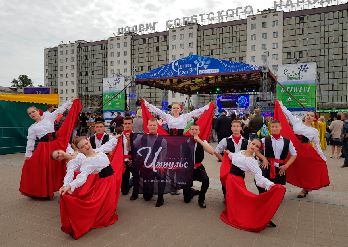 Студия танца «Импульс» средней школы №11 города Слуцка под руководством Цейко Галины Викторовны заняла третье место на конкурсе танцев, проходящем в рамках 28-го международного фестиваля искусств «Славянский базар», сообщает slutsk-gorod.by.