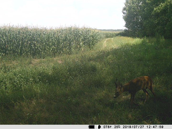 Вот, например, где-то между кукурузой и лесом гуляют косули.