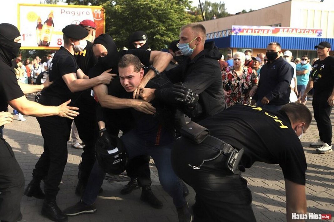 Милиция просит людей не стоять на тротуаре, а быть возле МЦ — на отведённом для митинга месте.