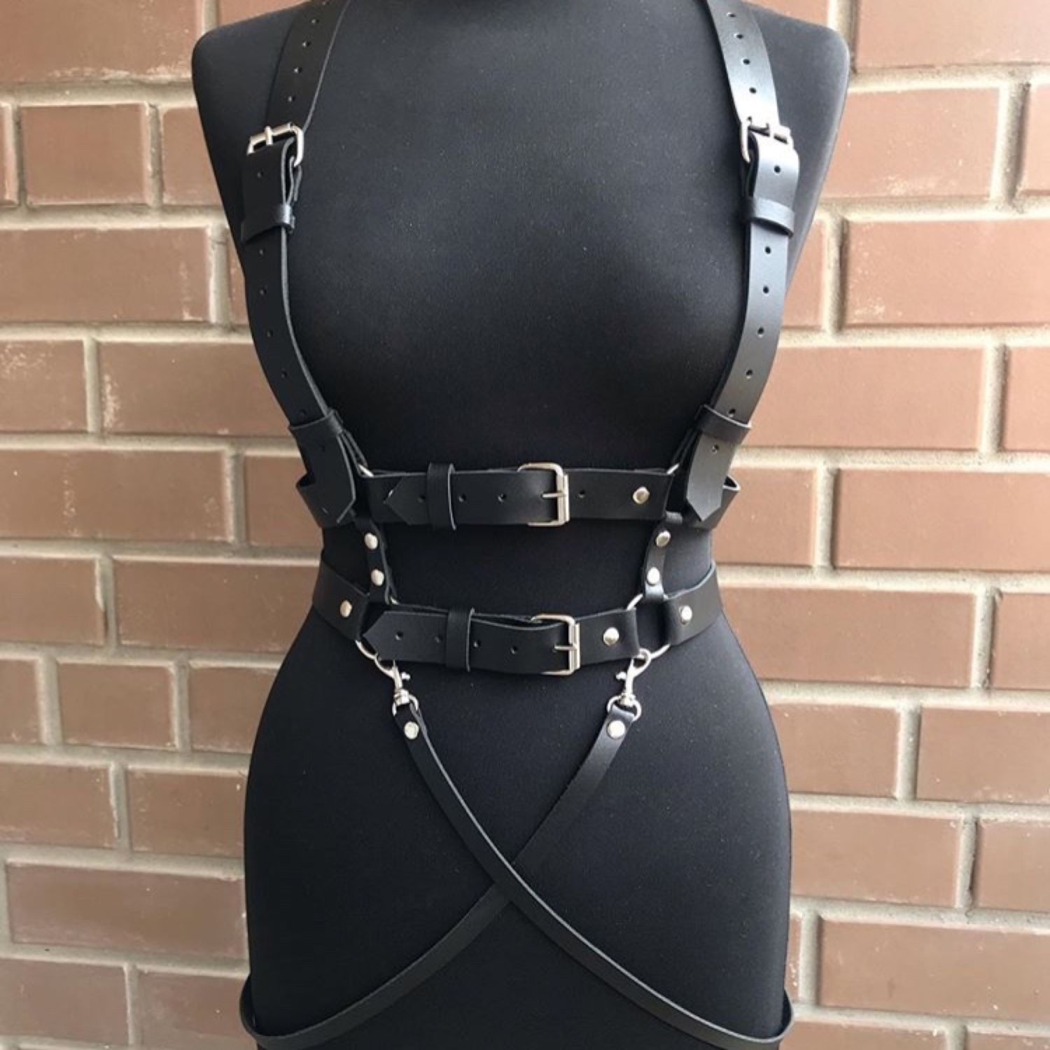 - Портупеи зрительно увеличивают объем груди. Поэтому дамам с пышными формами аксессуар носить не рекомендуется.