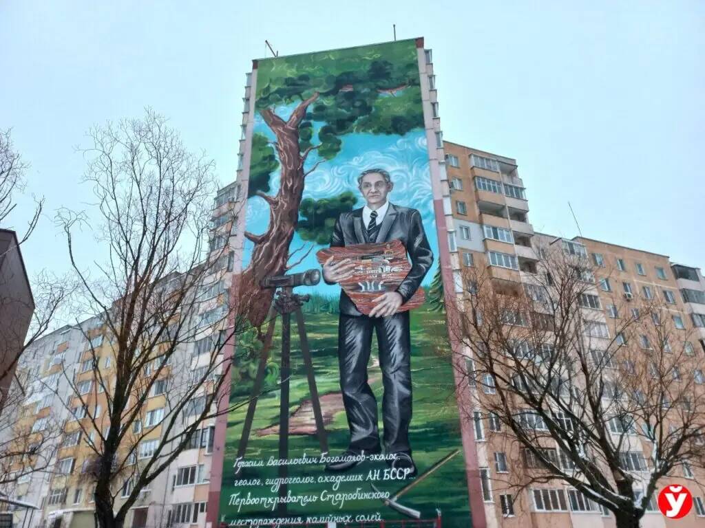 Героем нового мурала в Солигорске стал советский ученый, эколог, гидрогеолог, Академик АН БСССР Герасим Васильевич Богомолов. Автор масштабного рисунка высотой в 12 этажей, художник Леонид Нифедов сообщил о завершении работы. Примечательно, что дом с муралом расположен на улице, названной в честь Богомолова, сообщает mlyn.by.